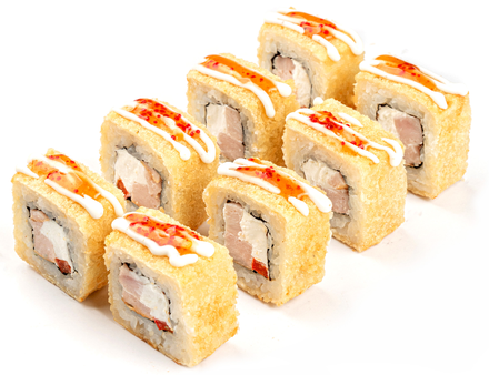 Яркий темпурный ролл в кляре с нежной копченой курочкой, идеальное сочетание в одном ролле (8 шт.)