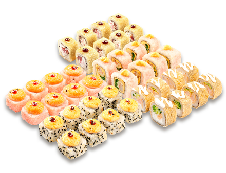 Лосось в новом формате — хрустящий темпурный сэндвич с нежной рыбкой. А в придачу — гора любимых роллов, где каждый найдет своё