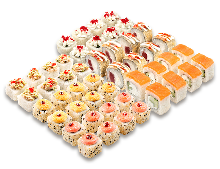 Фирменные горячие роллы с рыбкой и морепродуктами в самом женственном сете из 48 роллов