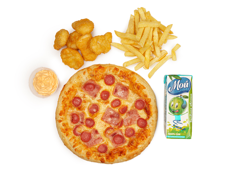 Главный компонент практически всех наших комбо — пицца, заказать можно одну или несколько. Популярное итальянское блюдо предлагаем дополнить: