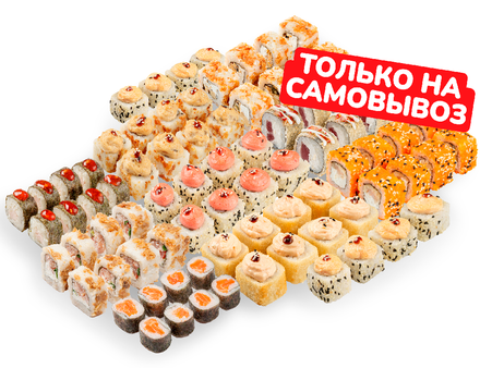 Большой и выгодный сет роллов с рыбкой, морепродуктами и аппетитной копченой курочкой. Заказывай и забирай самовывозом!