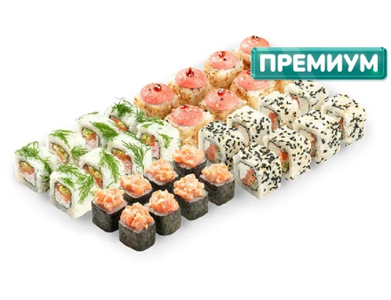 В описании каждой позиции меню есть точный состав. Наведите курсор на название блюда, чтобы увидеть его фото и состав — так вы точно узнаете, что будет в наборе. Также в карточках товаров указано количество роллов и точный вес.