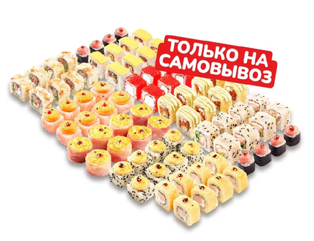 Большой и выгодный сет роллов с рыбкой, морепродуктами и аппетитной копченой курочкой. Заказывай и забирай самовывозом!