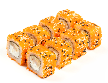 Очень вкусный ролл с оранжевой масаго и нежной начинкой из сливочного сыра и снежного краба! (8 шт.)