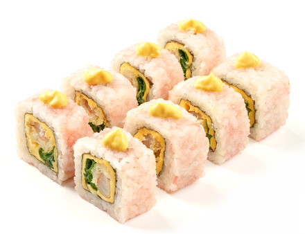 Начинка из креветки в кляре с рисом и яркой икрой масаго сверху (8 шт.)